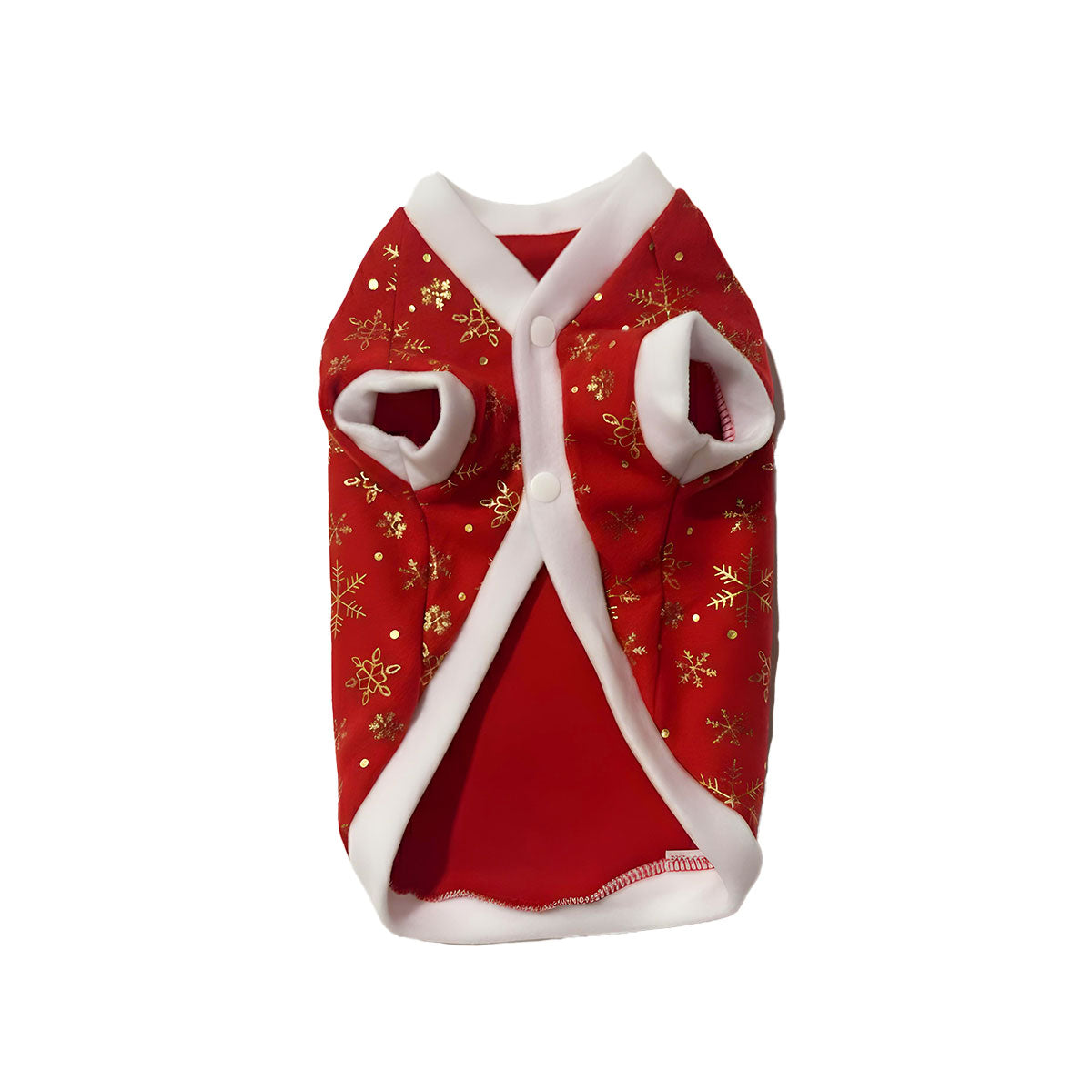 Viste a tu compañero con el espíritu más elegante de la Navidad. Este hermoso Abrigo es la prenda perfecta para las fiestas. Con un color rojo intenso adornado con brillantes copos de nieve dorados, tu mascota lucirá sofisticada en cualquier celebración. El diseño es fácil de colocar y está pensado para abrigar sin restringir, asegurando que tu perro o gato esté cómodo, cálido y listo para ser el centro de atención. ¡Añade un toque de magia dorada a su guardarropa!